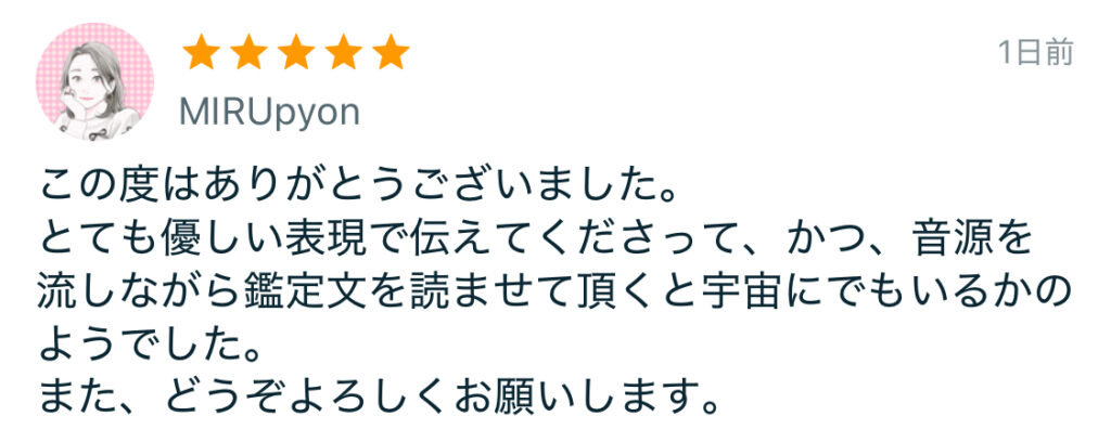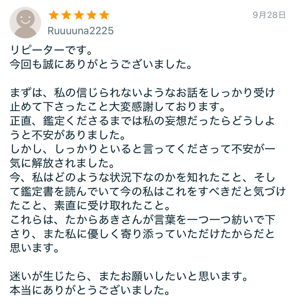 お客様が喜ぶ姿、気づきを得て清々しい気持ちのシェアなど、鑑定師冥利に尽きる最幸の瞬間だからです。この声を聞くために占いを続けているといっても過言ではありません。